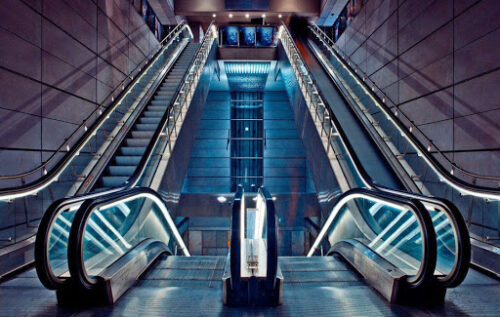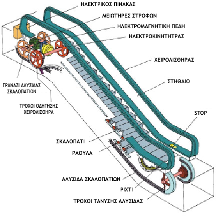 • Escalators are installations with mechanical movement that includes an endlessly moving series of steps (stairs) for the transport of passengers in the direction of ascent or descent (ELOT 115)